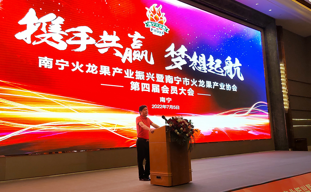 2022/07/302022 年7月5日,南寧火龍果產業振興暨南寧市火龍果產業協會第四屆會員大會在南寧舉行,本次大會由南寧市農業農村局主辦,廣西金穗生態集團協辦。南寧市政府副秘書長、市鄉村振興局局長張清亮、隆安縣副縣長楊梅莉、廣西金穗農業集團董事長盧義貞、廣西金穗生態集團旗下子公司緣隆生物總經理龐乃雄出席并講話。
